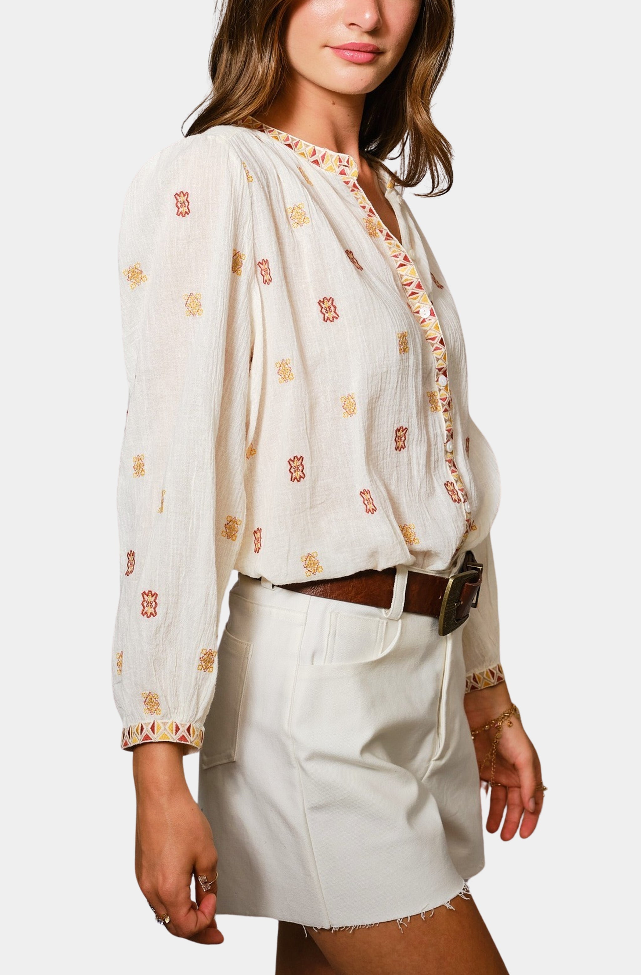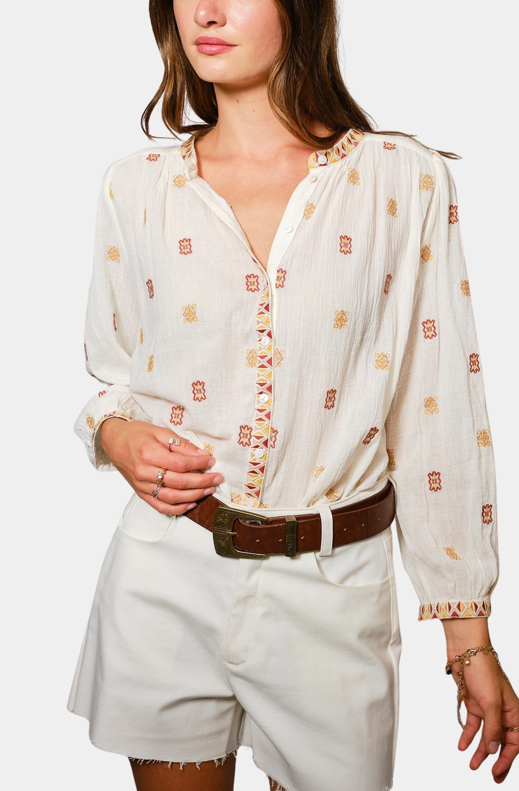 Farm Rio Rococo Flowers Cream Long Sleeve Blouse