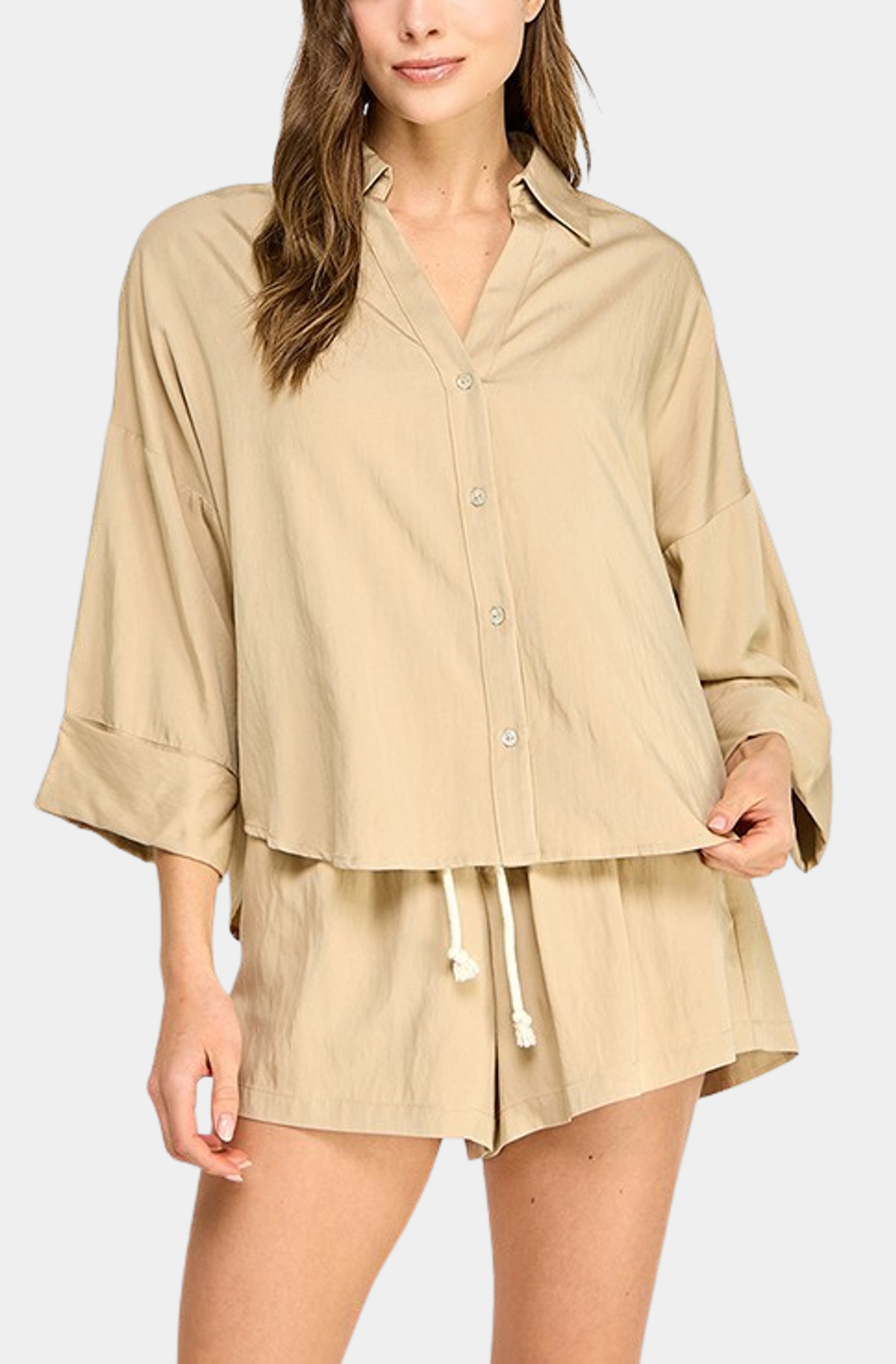 Boho Enchance Mocha Ties Blouse